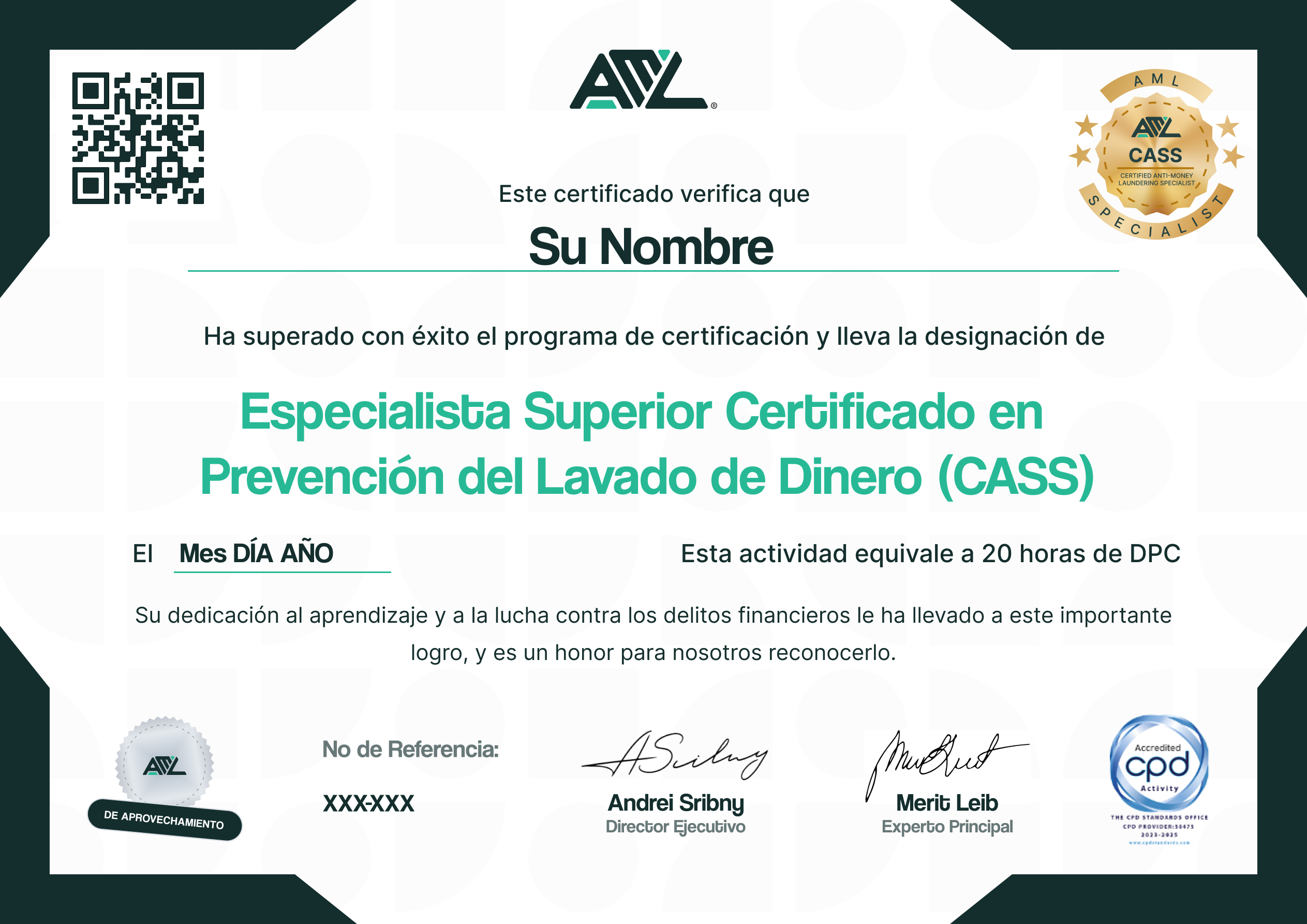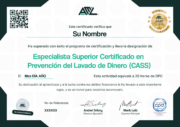 El Especialista Certificado en Lavado de Dinero es un extenso curso educativo diseñado para mejorar la comprensión de AML/CTF+, a la medida de los aspirantes a profesionales de AML y AFC que buscan un conocimiento integral y habilidades prácticas.